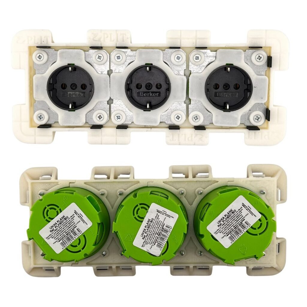 🔹 Warianty konfiguracji: Dostępne opcje pojedynczego, podwójnego i potrójnego gniazdka.