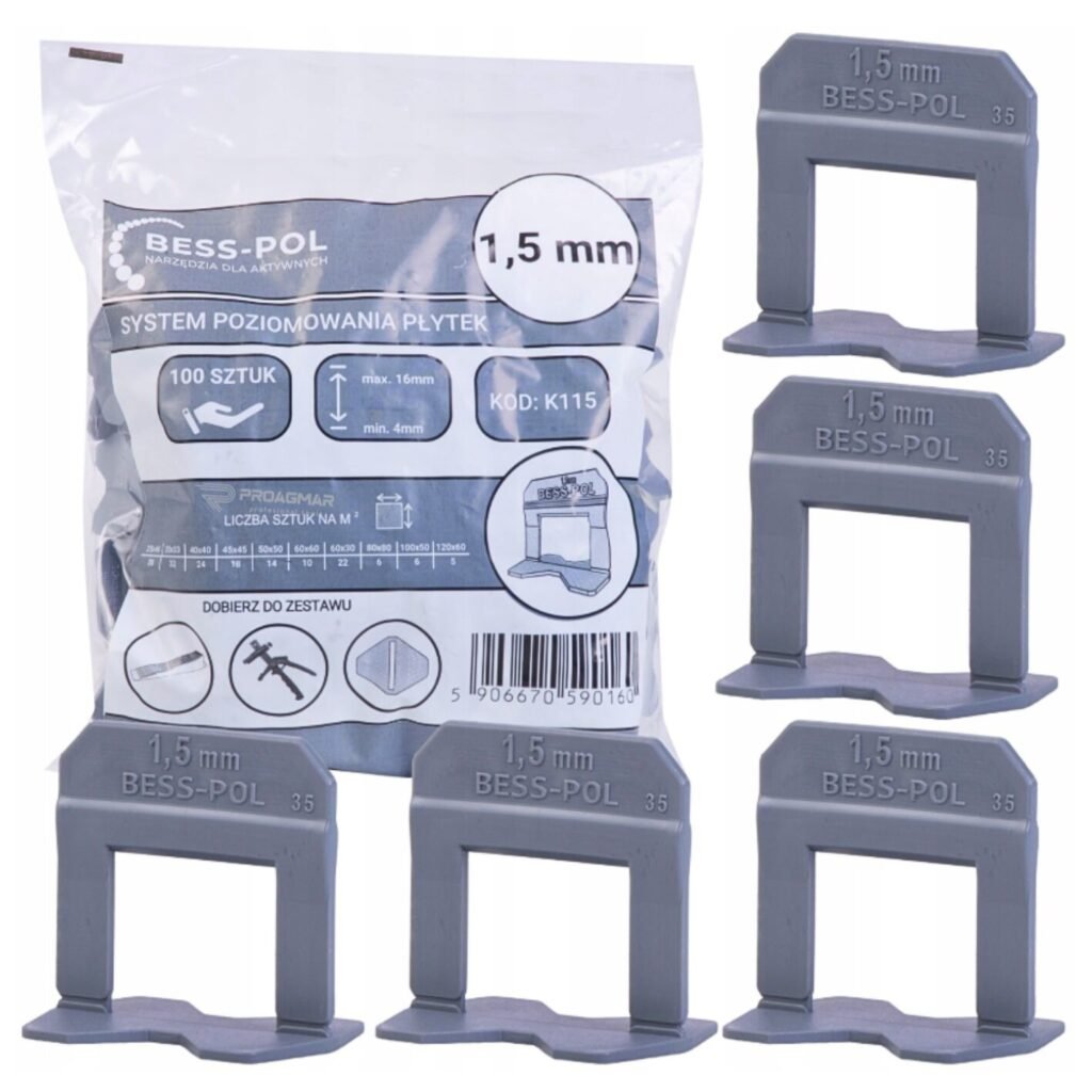 KLIPSY 1,5mm BESS-POL SYSTEM POZIOMOWANIA PŁYTEK 100SZT