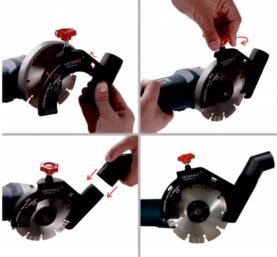 Służy do odprowadzania pyłu podczas cięcia materiałów budowlanych szlifierką kątową.