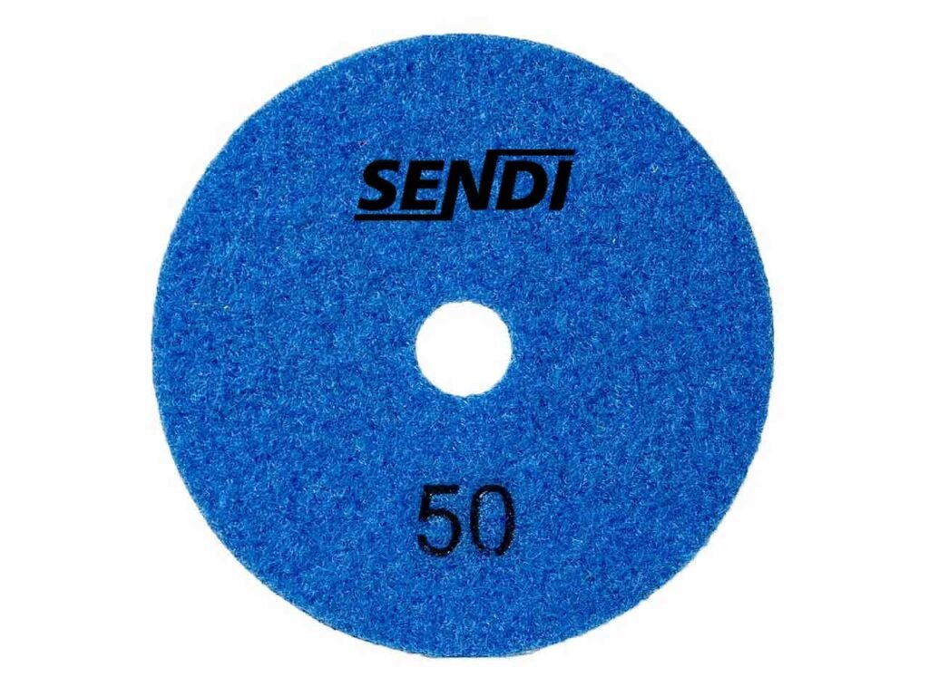 Pad polerski SENDI o średnicy 100 mm i gradacji 50 przeznaczony do szlifowania i polerowania na sucho różnych powierzchni, w tym granitu, marmuru, płytek ceramicznych, gresowych i betonu. Krążek polerski umożliwia uzyskanie doskonałego wykończenia zarówno na powierzchniach płaskich, jak i na krawędziach fazowania. Dysk polerski jest łatwy w montażu i demontażu, dzięki wygodnemu mocowaniu na rzep.