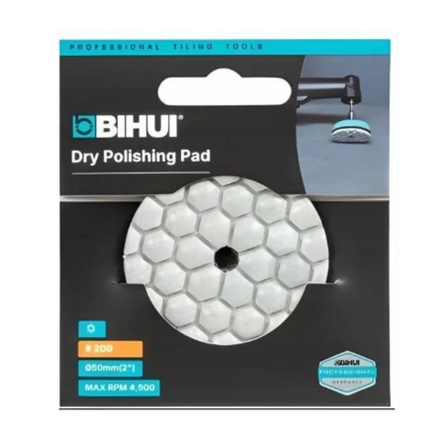 Dysk polerski do pracy na sucho, przeznaczony do wszystkich rodzajów płytek gresowych, ceramicznych, marmuru, granitu i kamienia naturalnego.