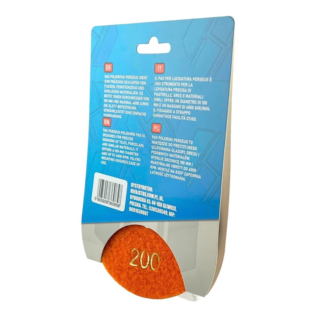 Pad polerski HEFAJSTOS o średnicy 100 mm i gradacji 200 przeznaczony do szlifowania i polerowania na sucho różnych powierzchni, w tym granitu, marmuru, płytek ceramicznych, gresowych i betonu. Krążek polerski umożliwia uzyskanie doskonałego wykończenia zarówno na powierzchniach płaskich, jak i na krawędziach fazowania. Dysk polerski jest łatwy w montażu i demontażu dzięki wygodnemu mocowaniu na rzep.