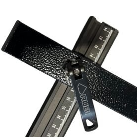 - Przymiar z ogranicznikiem bocznym z odlewanego ciśnieniowo aluminium do cięć powtarzalnych i wąskich odcinków ze wzmocnionym elementem z tworzywa sztucznego do cięć pod kątem 45°.