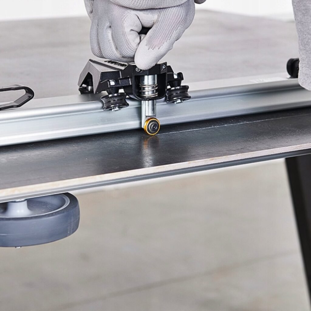 Wózek tnący jest zaprojektowany tak, aby przenosić cały nacisk wywierany przez operatora na płytkę, bez żadnych ograniczeń i bez strat spowodowanych zakłóceniami mechanicznymi.
