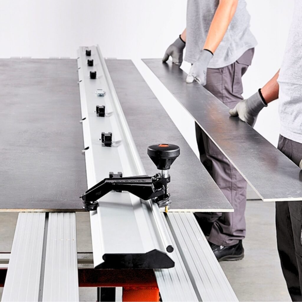 System do cięcia płytek wielkoformatowych do 336 cm (451 cm z opcjonalnym przedłużeniem), lekki (5,4 kg) i łatwy w transporcie.
