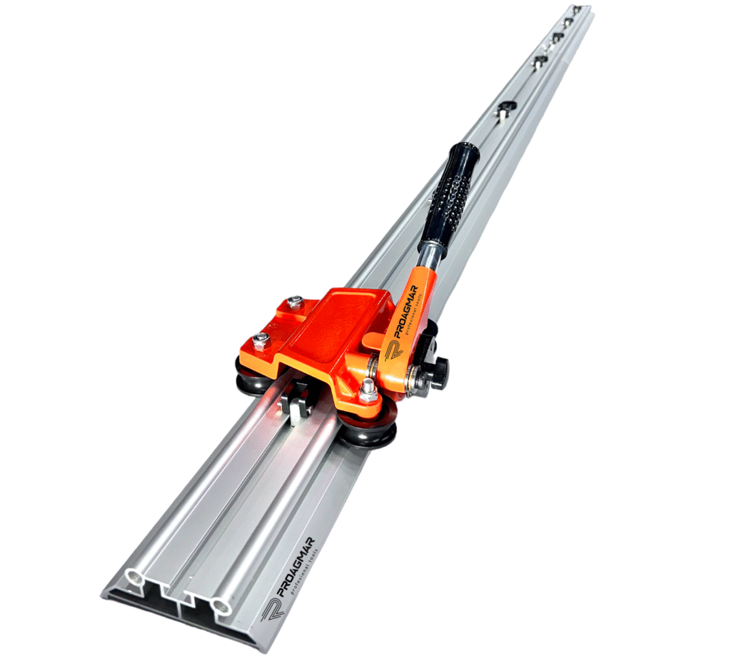 Dzięki aluminiowym prowadnicom w dwóch sekcjach, urządzenie umożliwia precyzyjne cięcie płytek o długości aż do 210 cm!