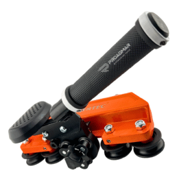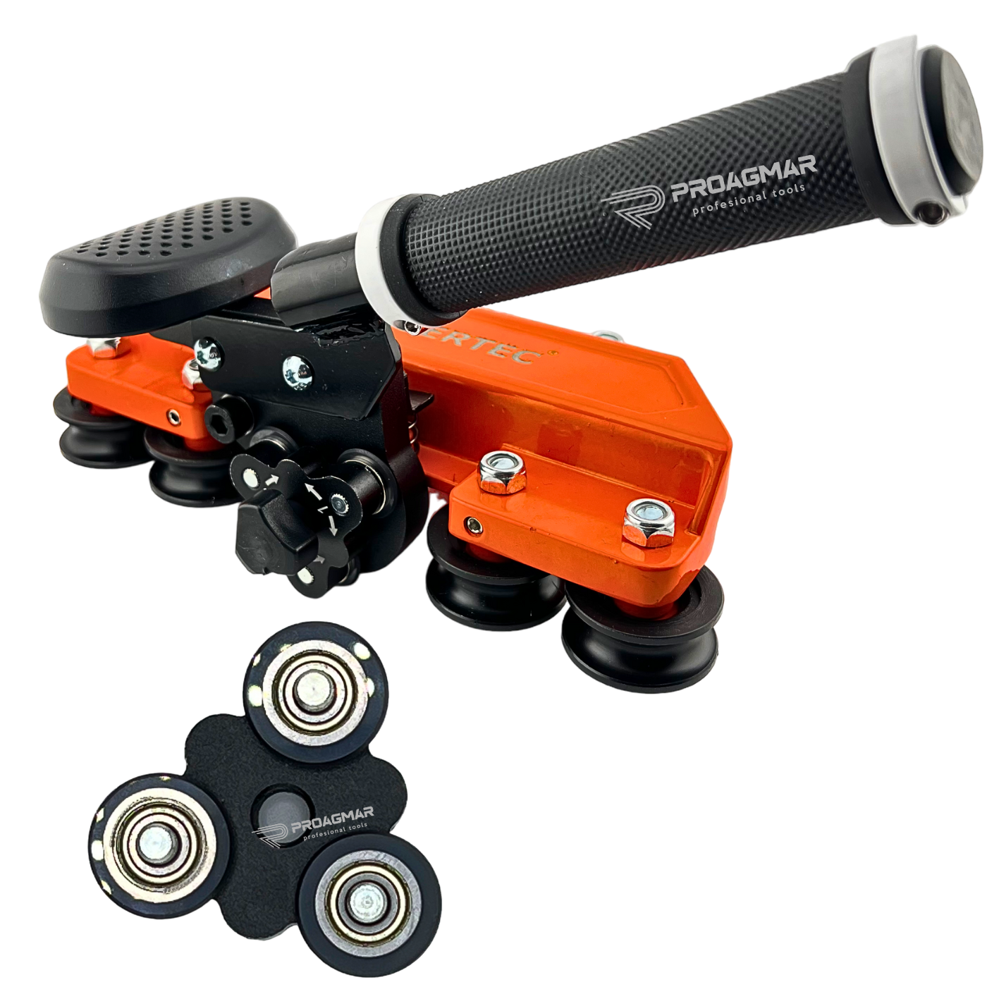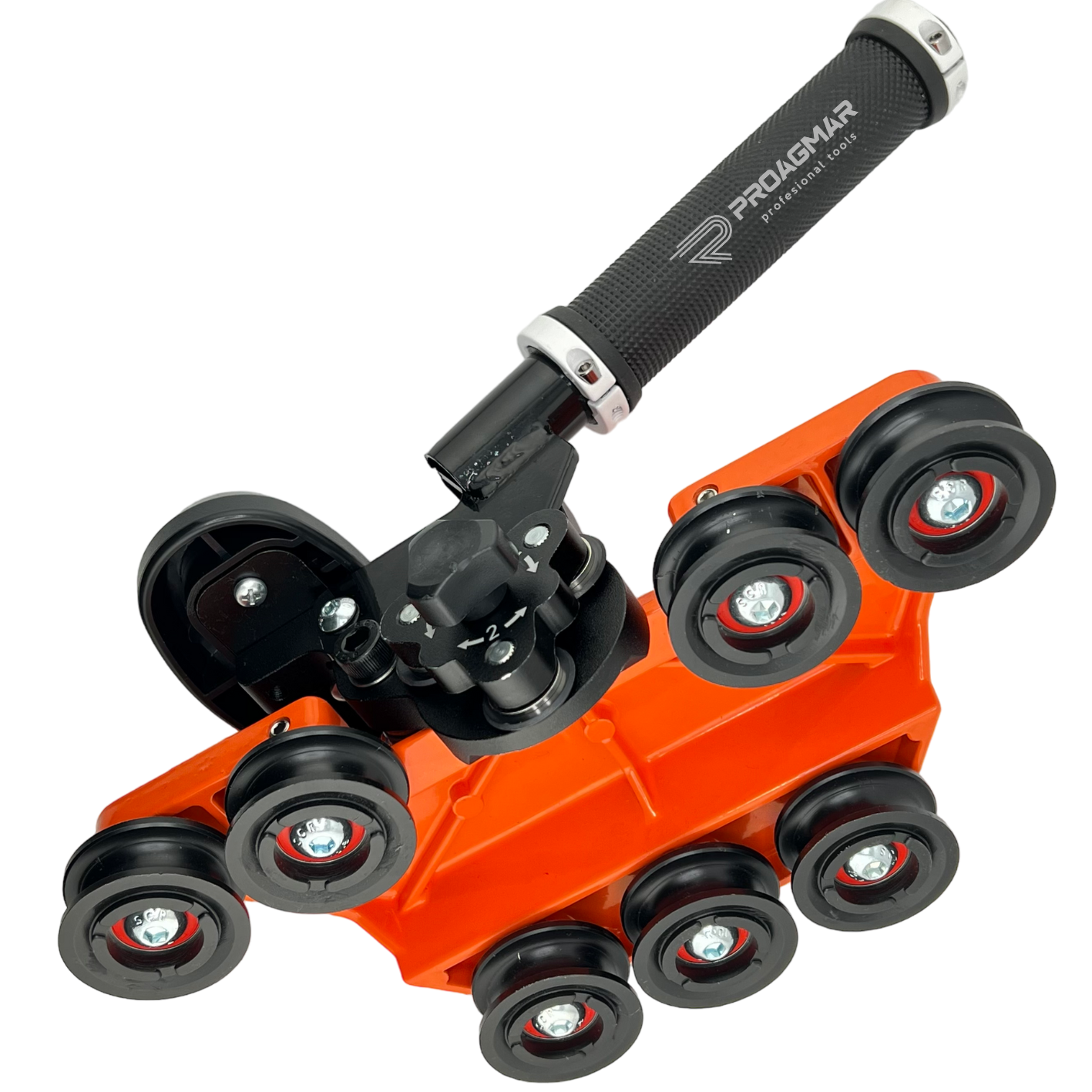 Zespół tnący wyposażony jest w aż 7 łożyskowanych kółek, co gwarantuje gładki przesuw bez zacięć i równomierny nacisk na płytkę.