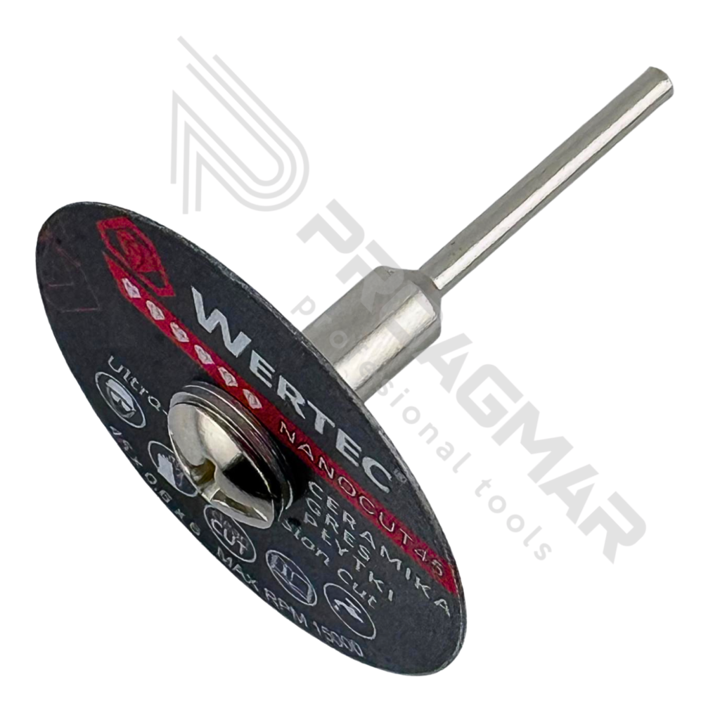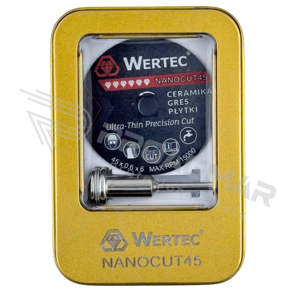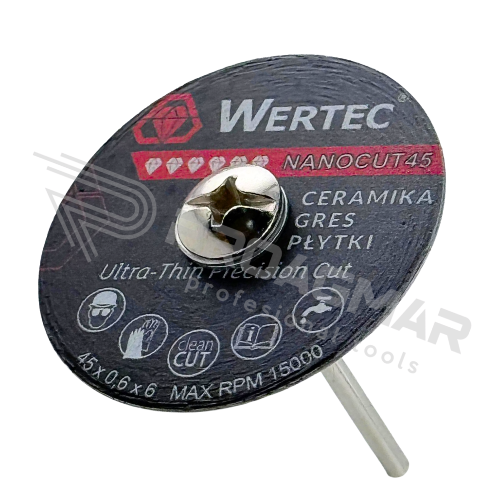 Profesjonalna tarcza diamentowa Wertec NanoCut 45 została zaprojektowana do precyzyjnego i czystego cięcia materiałów ceramicznych mikronarzędziami np wiertarką Proxxon ( nie zapomnij dokupić trzpienia do tarczy )