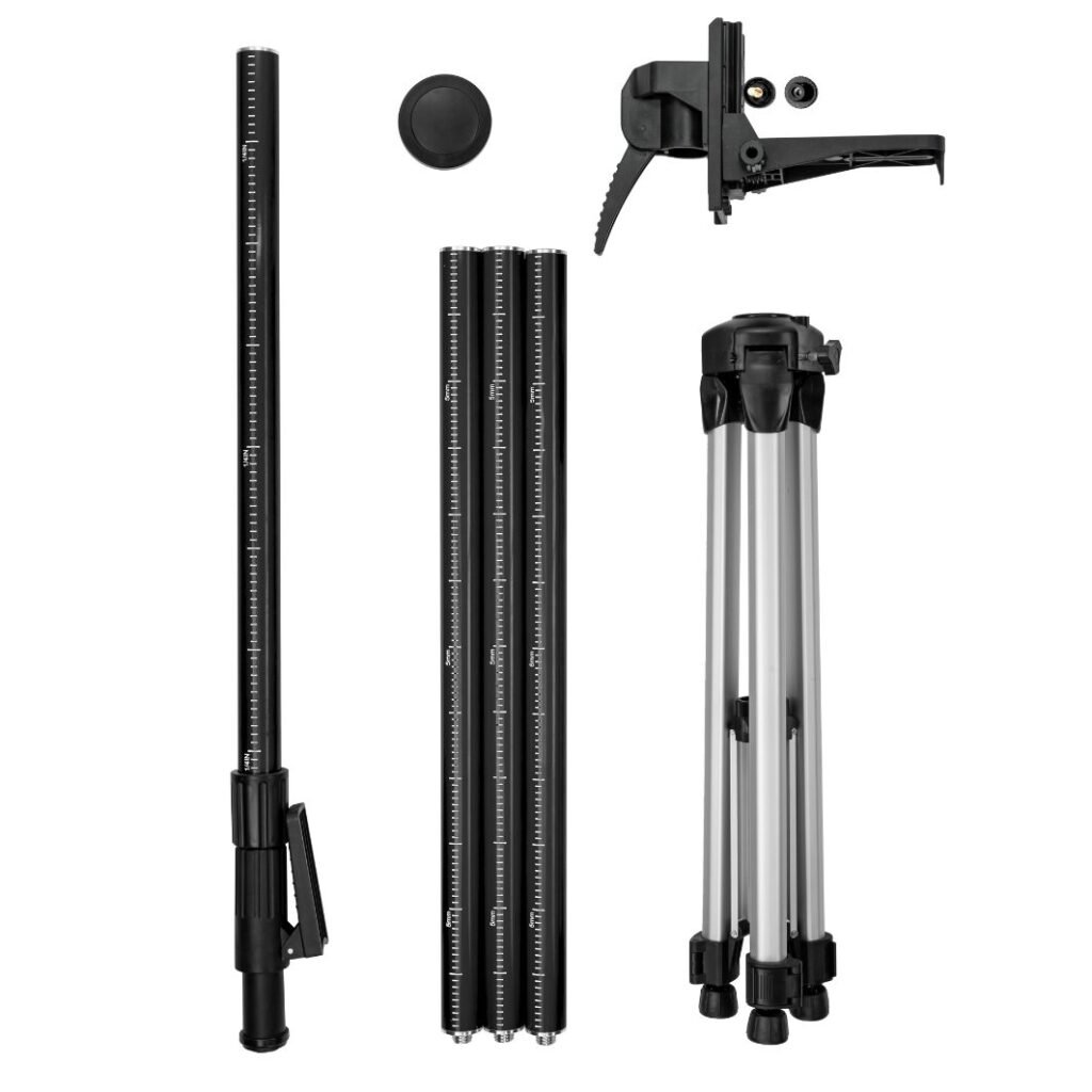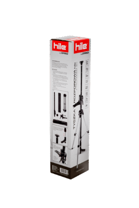 Tyczka wyposażona jest też w podziałkę metryczną, ułatwiającą umieszczenie lasera na żądanej wysokości.
