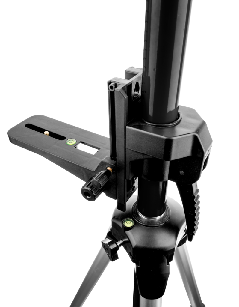 – Ruchomy, uniwersalny uchwyt mocujący z mosiężnymi śrubami o gwintach 5/8” oraz 1/4”, służący do umieszczania lasera na tyczce,