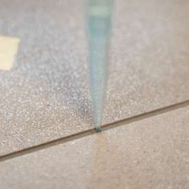 Wiercenie otworów w fudze: Wywierć 2 otwory na głębokość fugi, zachowując odstęp około 30 cm między nimi. Użyj wiertła kobaltowego 2mm, aby otwory były odpowiedniej wielkości. Usuń pył i luźne odłamki za pomocą odkurzacza lub nawilżanej ściereczki czyszczącej.