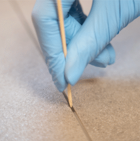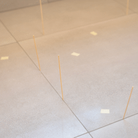 Lokalizacja pustych przestrzeni: Użyj wykrywacza Gap Finder Stick lub kostek dłoni, aby znaleźć puste przestrzenie pod płytkami. Wypełnione miejsca będą wydawać niski dźwięk, a puste – wysoki. Zaznacz te obszary taśmą znakującą.