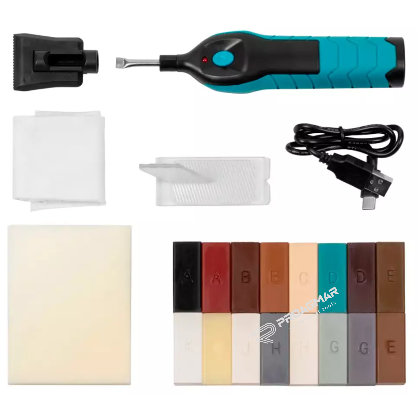Twardy wosk w 16 kolorach zapewnia możliwość dokładnego dopasowania odcienia do naprawianej powierzchni.